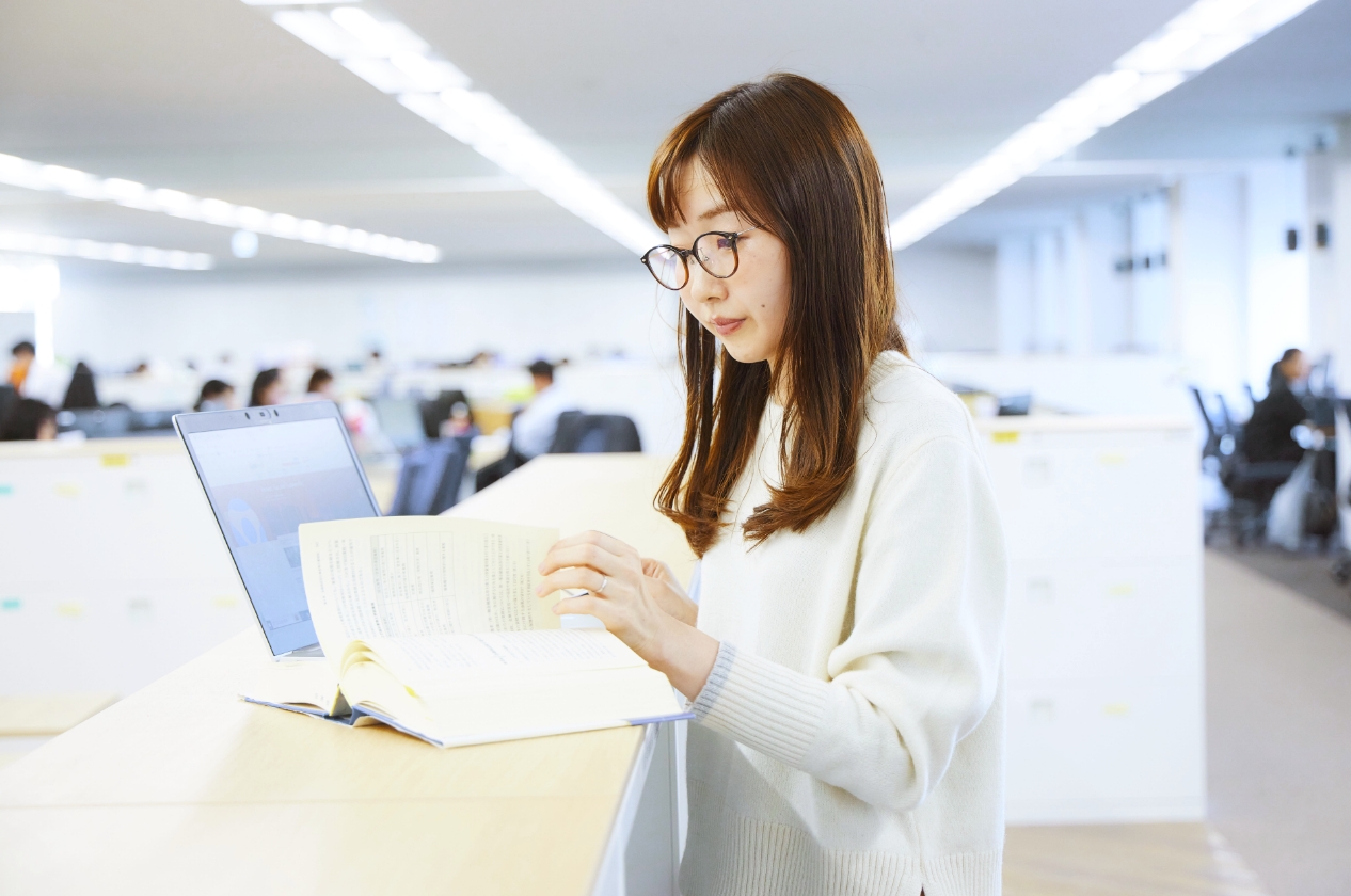 法務に関する様々な知識が必要ですが、大学では法律学とは無縁の学問を専攻していたため、全くゼロからのスタートでした。配属後は半年ほど上司から個別に法務のレクチャーを受けるなど、法律に関する基礎知識を学び、現在もスキルアップに努めながら業務に励んでいます。